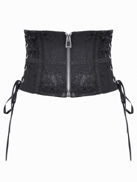 Black Gothic Lace Zip Front Waist Training Corset