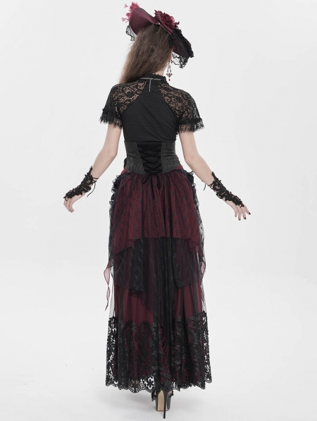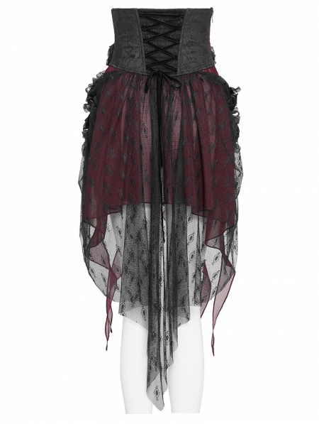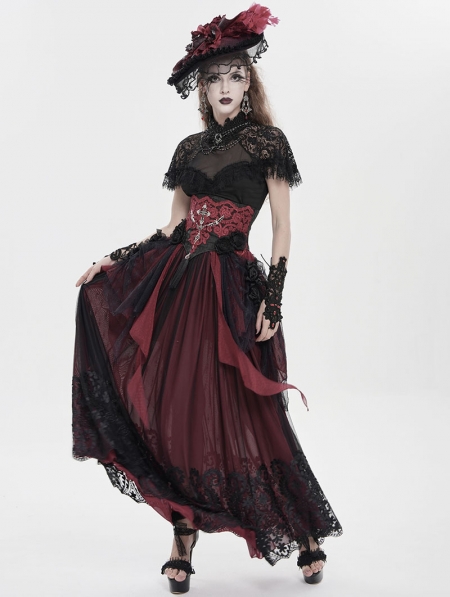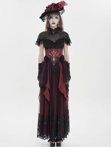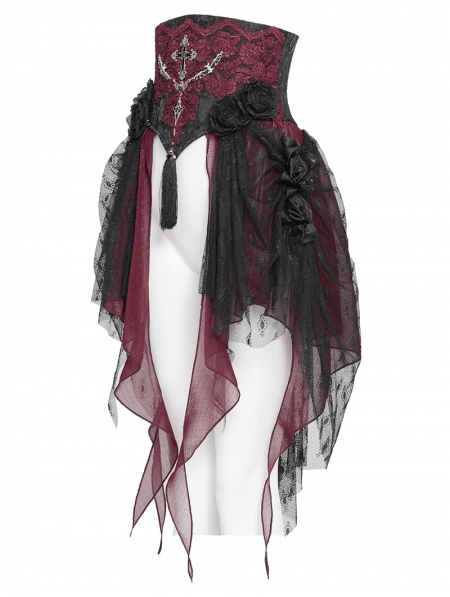 Black and Red Retro Gothic Cross Bat Corset with Tulle Skirt