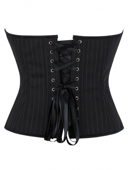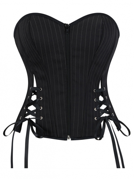 Black Striped Punk Zip Front Gothic Overbust Corset