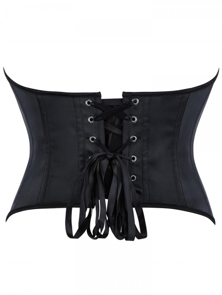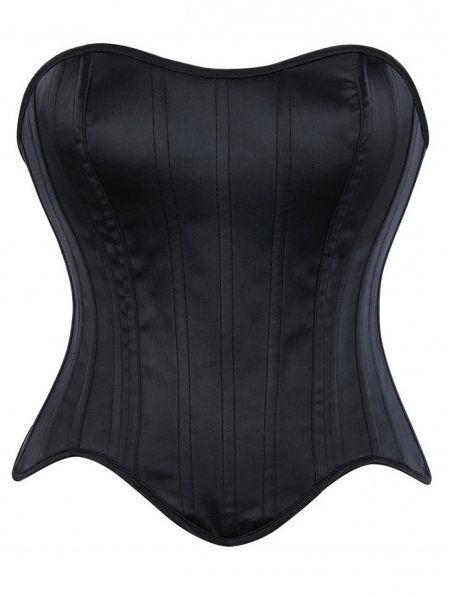 Black Gothic Satin Lace Up Boned Overbust Corset