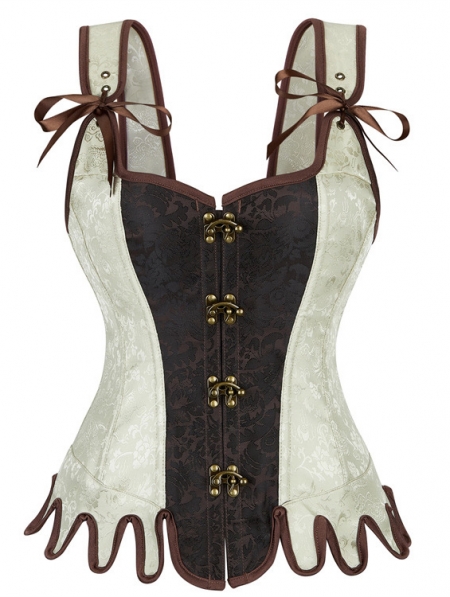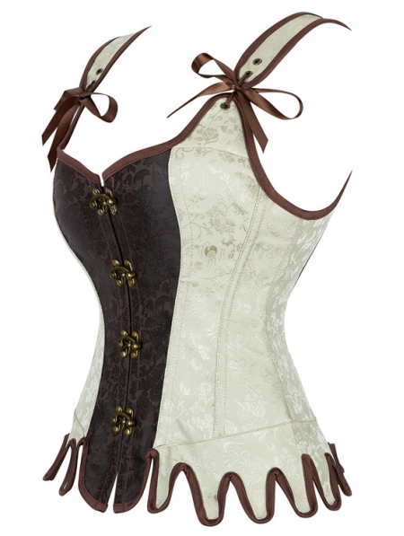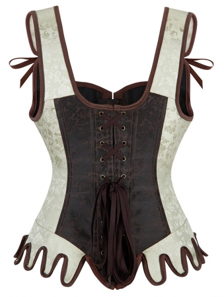 Brown and Beige Steampunk Gothic Victorian Overbust Corset