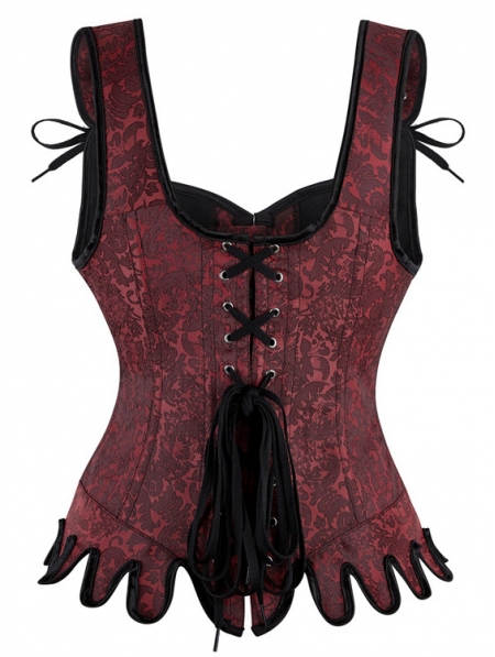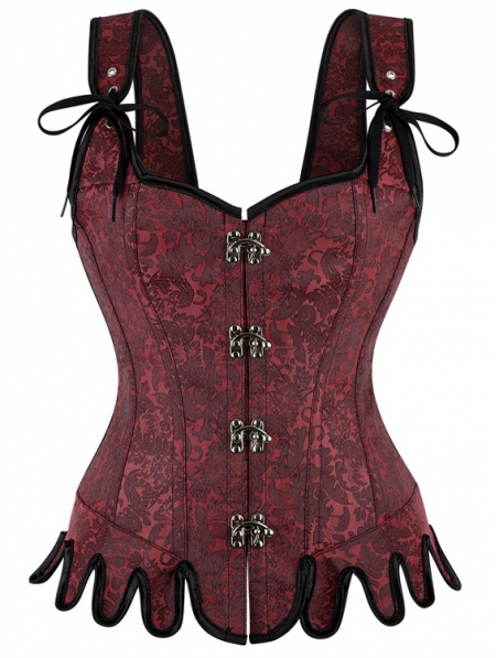 Dark Red Steampunk Gothic Victorian Overbust Corset