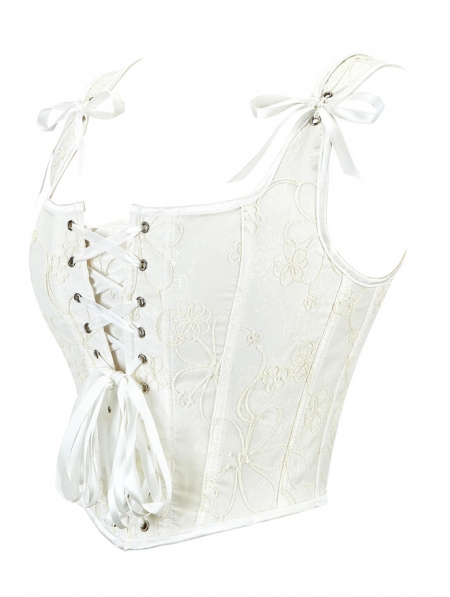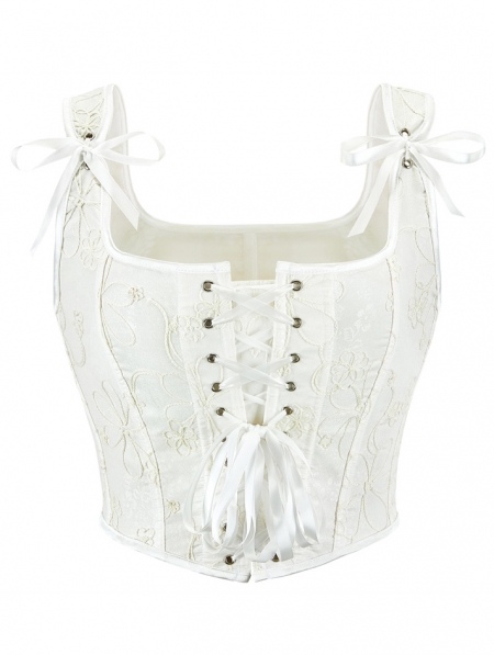 White Floral Jacquard Bow Strap Victorian Overbust Corset