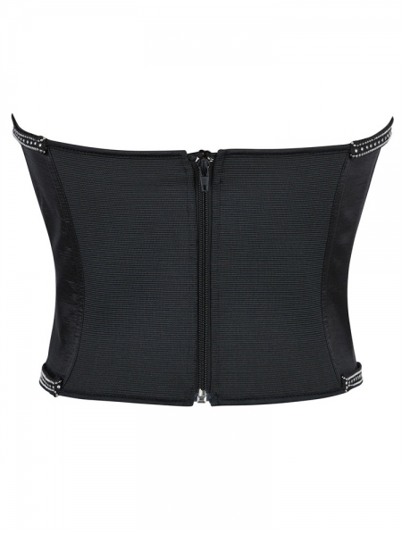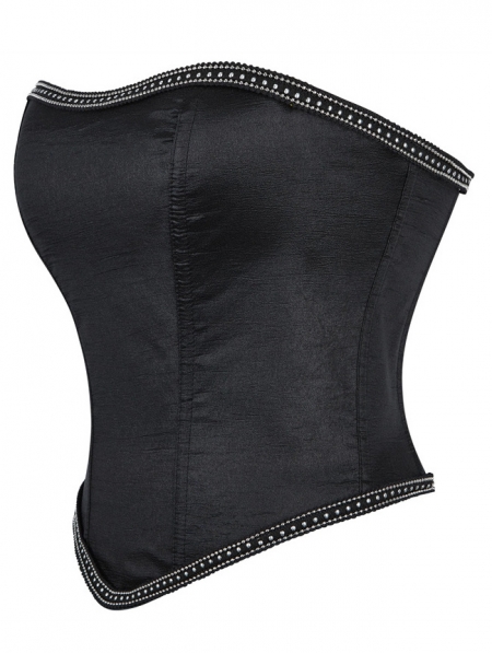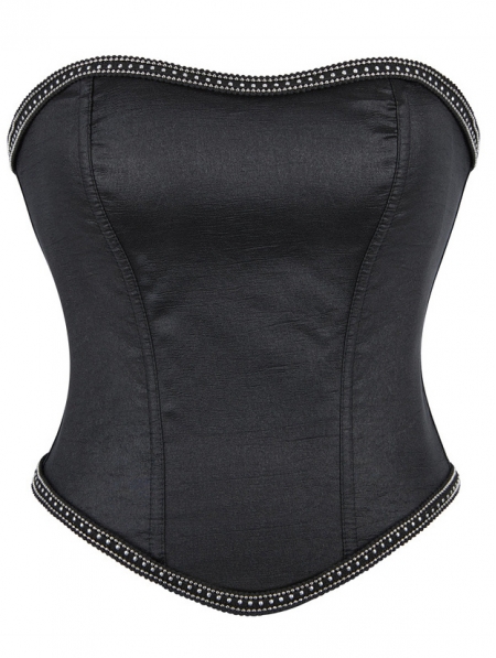 Black Gothic Silver Beaded Chain Trim Overbust Corset