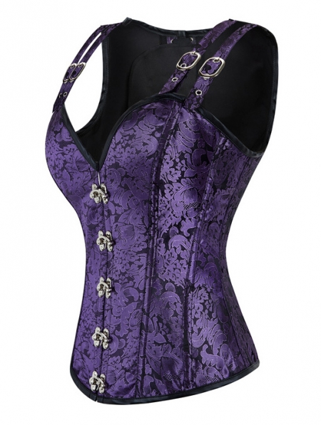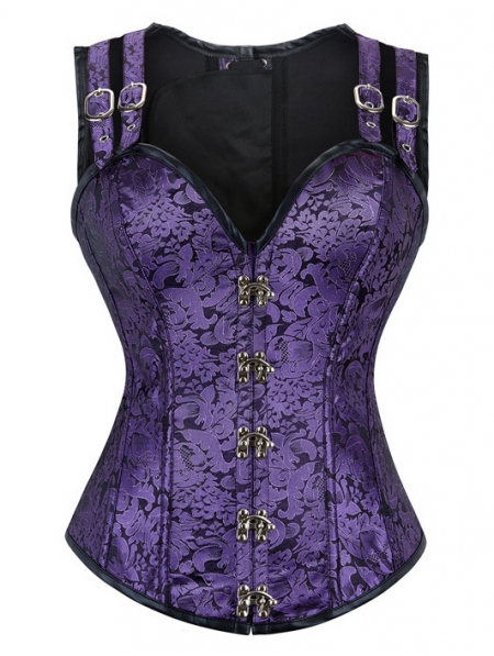 Purple Vintage Jacquard Overbust Steampunk Corset