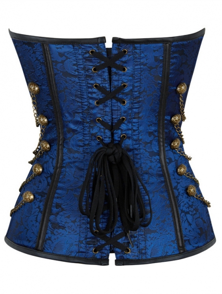 Blue Jacquard Vintage Gothic Overbust Steampunk Corset