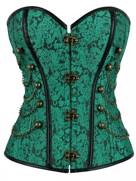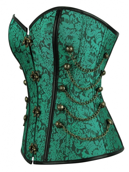 Green Jacquard Vintage Gothic Overbust Steampunk Corset