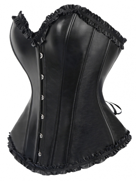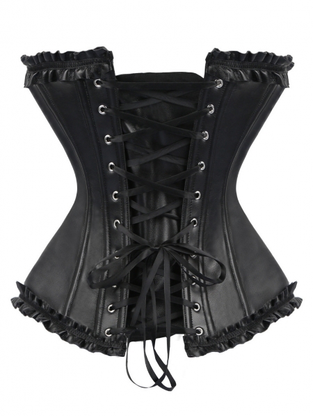 Black Gothic PU Ruffle Trim Overbust Corset