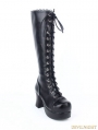 Black Gothic PU Leather Lace Up Chunky High Heel Knee Boots