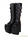 Black Gothic Punk PU Leather Lace Up Belt High Heel Knee Boots
