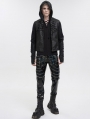 Black Gothic Punk Layered Chain Long Fitted Leather Pants for Men
