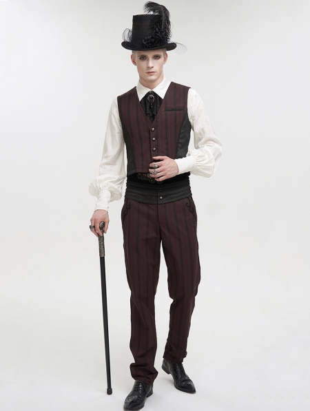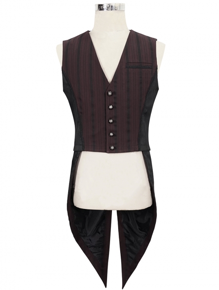 Wine Red Stripe Gothic Vintage Party Tailed Waistcoat for Men