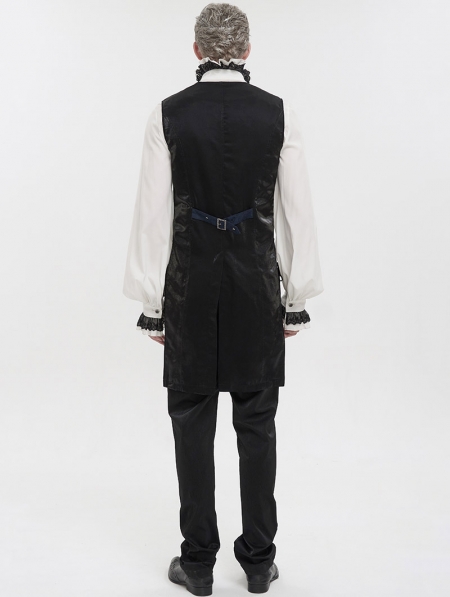 Blue and Black Gothic Retro Jacquard Tailed Waistcoat for Men