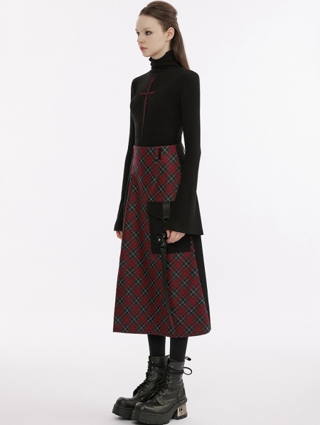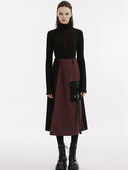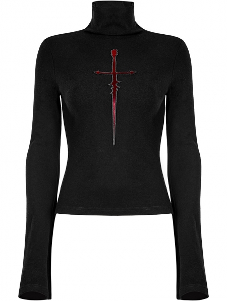 Black Gothic Cross Embroidery Long Sleeves T-Shirt for Women