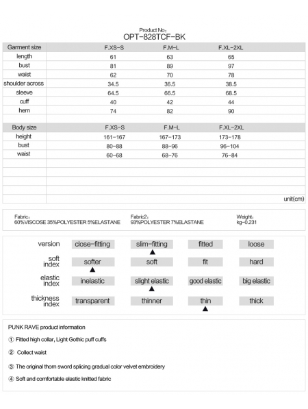 1.Fitted high collar.