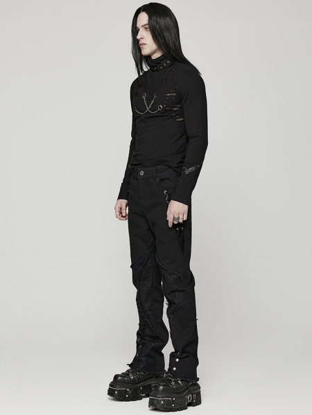 Black Gothic Punk Spider Mesh Spliced Pants for Men