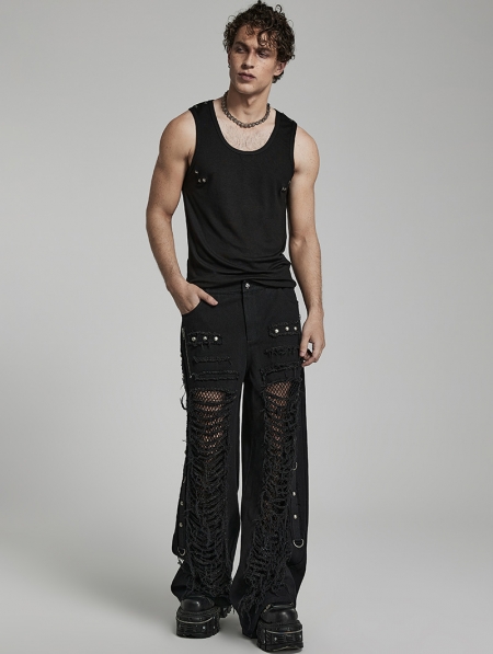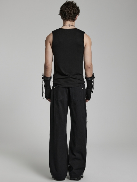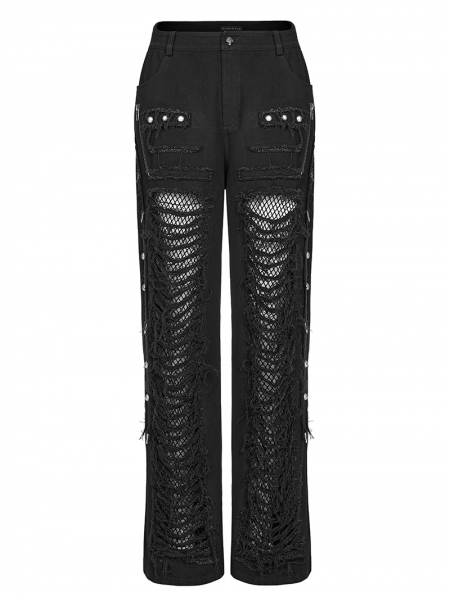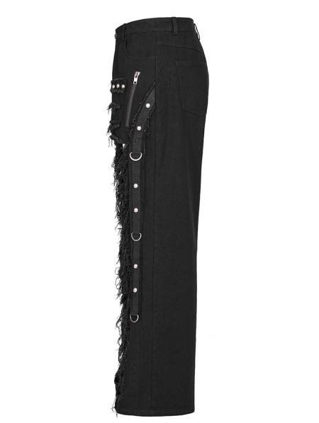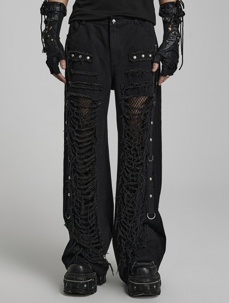Black Gothic Doomsday Ripped Loose Fit Denim Pants for Men