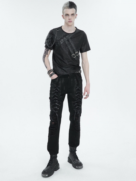 Black Gothic Punk Arm Pocket Short Sleeve T-shirt for Men
