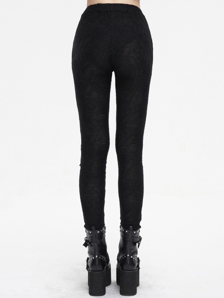 Black Gothic Casual Hollow Out Lace-Up Leggings for Women