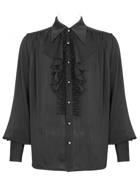 Black Gothic Gorgeous Ruffle Button Placket Party Shirt for Men