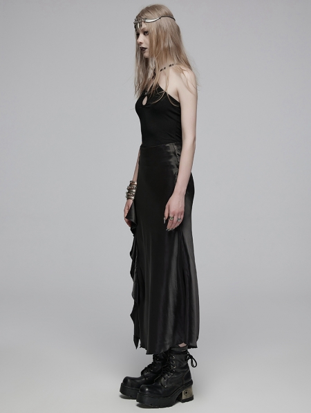 Black Gothic Draping Cut Asymmetric Side Split Long Skirt
