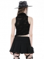 Black Gothic Punk Distressed Asymmetric Sleeveless T-Shirt for Women