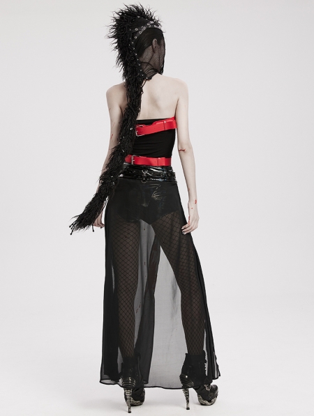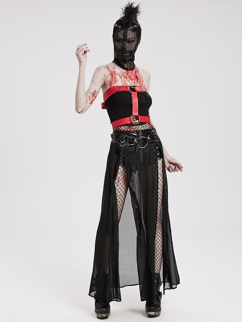Black Gothic Punk Faux Fur Mohawk Mesh Full Face Hood
