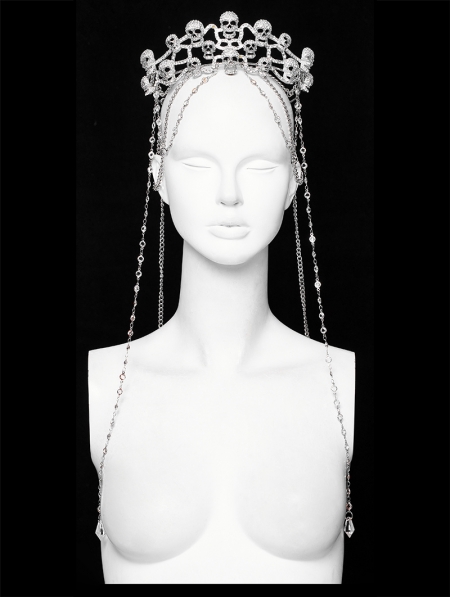 Silver Gothic Skull Rhinestones Chain Crown Headdress