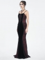 Black and Red Retro Gothic Velvet Lace Applique Sexy Maxi Slip Dress
