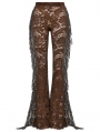 Coffee Sexy Gothic Floral Mesh Lace Flared Trousers for Women