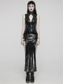 Black Gothic Sexy Punk Glossy Faux Leather Slit Long Dress