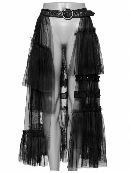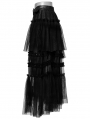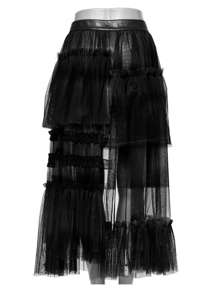 Black Gothic Sweet Cool Asymmetrical Layered Gradient Mesh Skirt