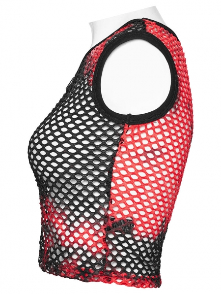 Black and Red Gothic Punk Tie-Dyed Mesh Tank Top for Women