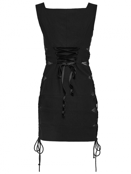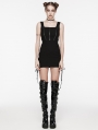 Black Gothic Grunge Sexy Knitted Drawstring Slim Short Dress