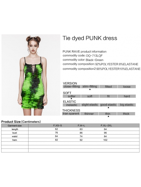 Black and Green Gothic Tie Dyed Punk Slim Fit Short Dress