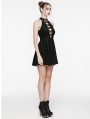 Black Gothic Rose Print Sexy Deep V-neck Sleeveless Short Dress