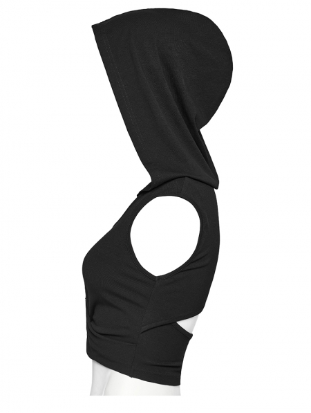 Black Gothic Wasteland Hooded Knit Crop Top for Women