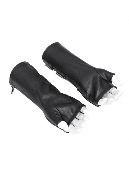 Black Gothic Punk Lace-Up Chain Gloves for Men