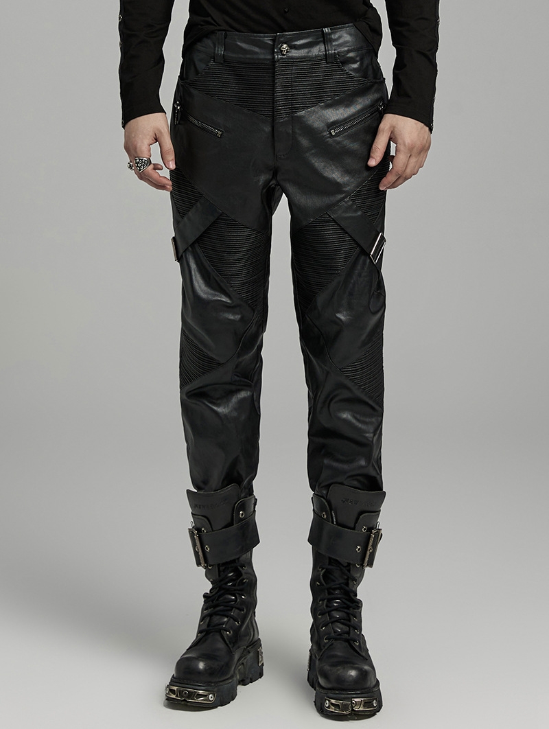 Black Gothic Punk Zipper Paneled Fit Casual Pants for Men