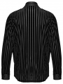 Black Gothic Striped Velvet Spliced Military Men's Fitted Shirt