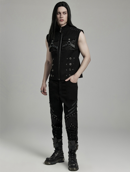 Black Gothic Punk Metal Personalized 3D Pocket Vest for Men