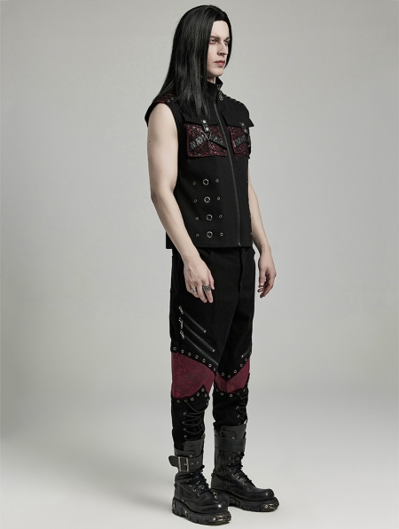 Black and Red Gothic Punk Metal Personalized 3D Pocket Vest for Men