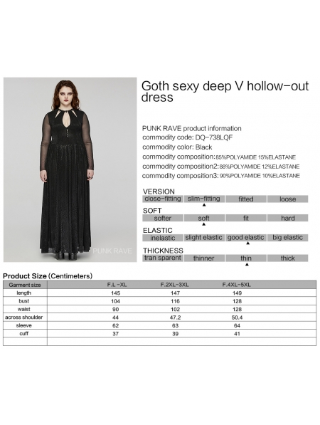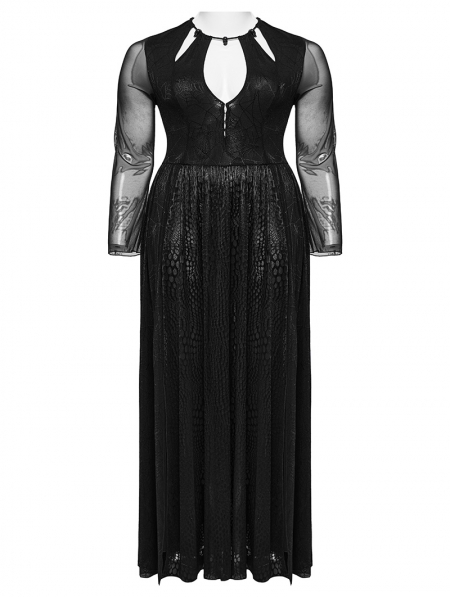 Black Gothic Sexy Deep V-Neck Hollow-Out Plus Size Long Dress