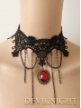 Black Lace Red Pendant Chain Gothic Vampire Necklace