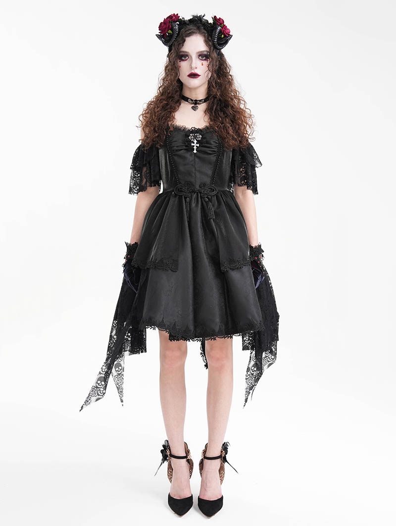 Black Gothic Off-the-Shoulder Lace Halter Short Party Dress