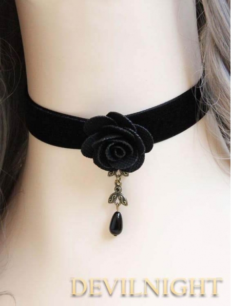 Gothic Vampire Black Flower Short Necklace Jewelry