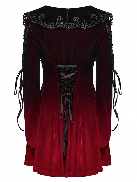 Black and Red Velvet Sweet Gothic Flared Sleeve Short Dress