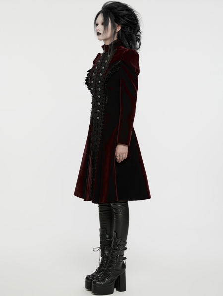 Black and Red Retro Gothic Velvet Symmetric Embroidery Party Coat for Women