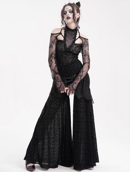 Black Gothic Retro Sexy Cut-Out Patterned Lace Top for Women