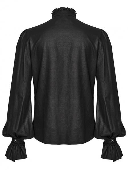 Black Gothic Palace Style Retro Ruffle Pleated Shirt for Men